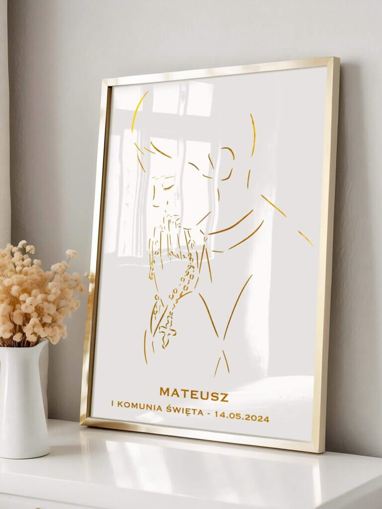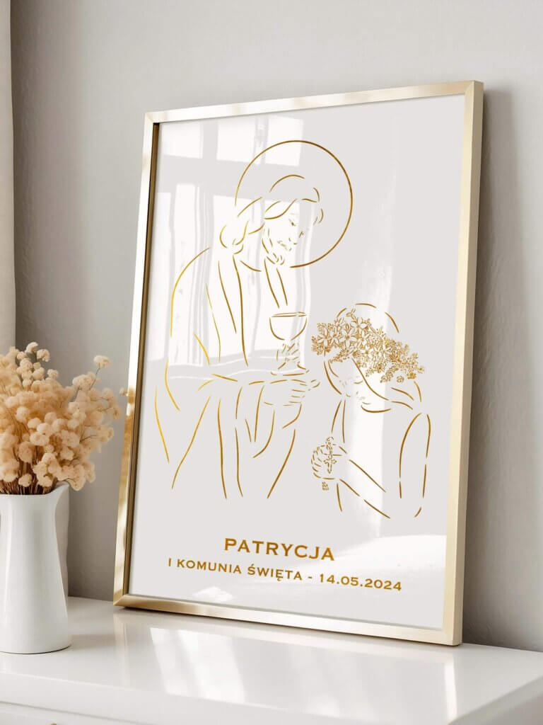 To elegancka dekoracja do pokoju dziecka lub salonu, która może towarzyszyć przez wiele lat. Plakaty komunijne to także świetny dodatek do prezentu od chrzestnych – nowoczesny, ale z zachowaniem duchowego charakteru uroczystości.