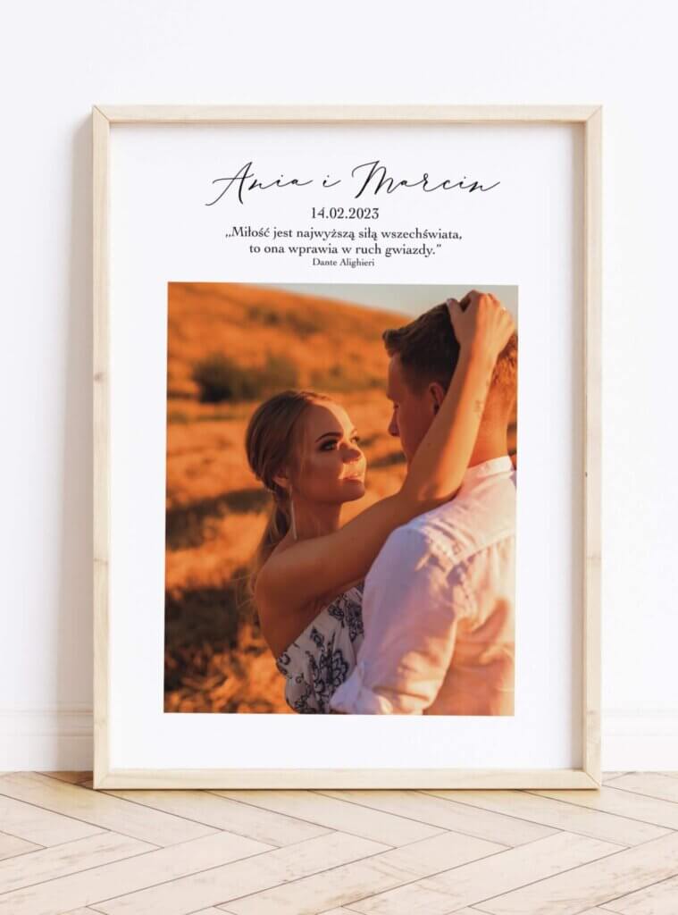 Tego typu plakat staje się pamiątką, którą można powiesić na ścianie w salonie lub sypialni, aby przypominała o tych wyjątkowych chwilach. Jest to również doskonały pomysł na prezent dla bliskich, którzy świętują swoje szczególne momenty w życiu.
