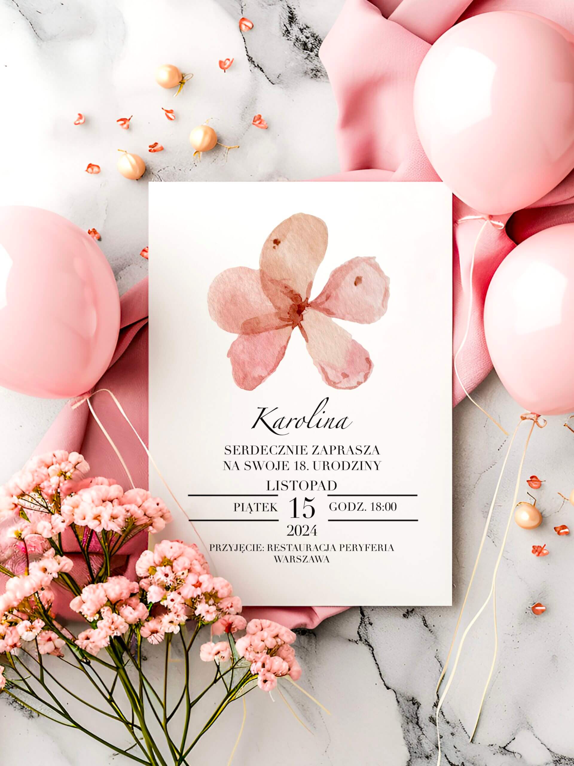 Delikatne zaproszenia na 18 urodziny z motywem kwiatowym