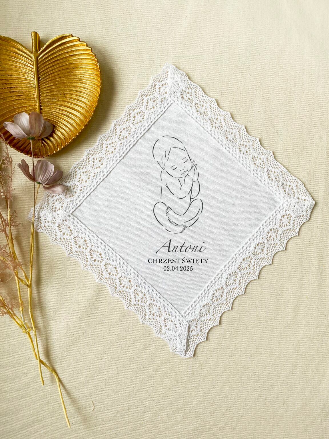 Szukasz wyjątkowej szatki na Chrzest dziecka? Znajdziesz ją u nas! Niezwykle elegancka, personalizowana szatka na Chrzest Święty zachwyci wszystkich! Minimalistyczny design tej szatki sprawia, że jest idealnym wyborem dla tych, którzy szukają elegancji w prostocie. Cała szatka wykonana jest z płótna bawełnianego, a także wyjątkowej koronki bawełnianej, ozdobionej jedną subtelnie umieszczoną grafiką i personalizowanym napisem pod. Ta minimalistyczna szatka jest zarówno wzruszającym pamiątką, jak i praktycznym elementem podczas ceremonii chrztu. Po jej użyciu, można zachować ją jako pamiątkę na całe życie lub przekazać dalej jako dar rodzinie.
